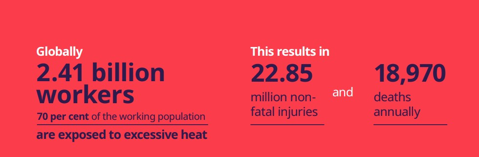 Toplinski stres može uzrokovati stanja poput toplinske iscrpljenosti, toplinskog udara pa čak i smrti. Dugoročno, radnici mogu razviti ozbiljne kronične bolesti koje pogađaju kardiovaskularni i respiratorni sustav, kao i bubrege. Prema ILO-u, 26,2 milijuna ljudi živi s kroničnom bubrežnom bolesti uzrokovanom toplinskim stresom na radnom mjestu.